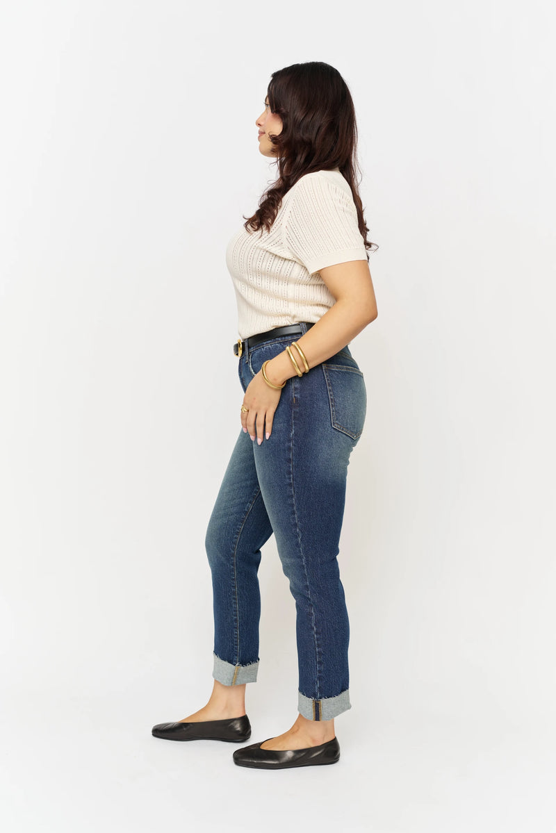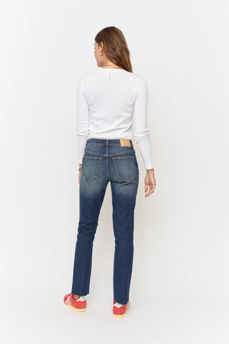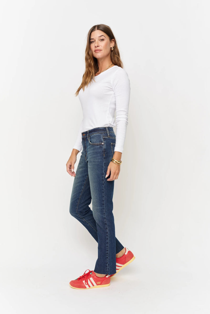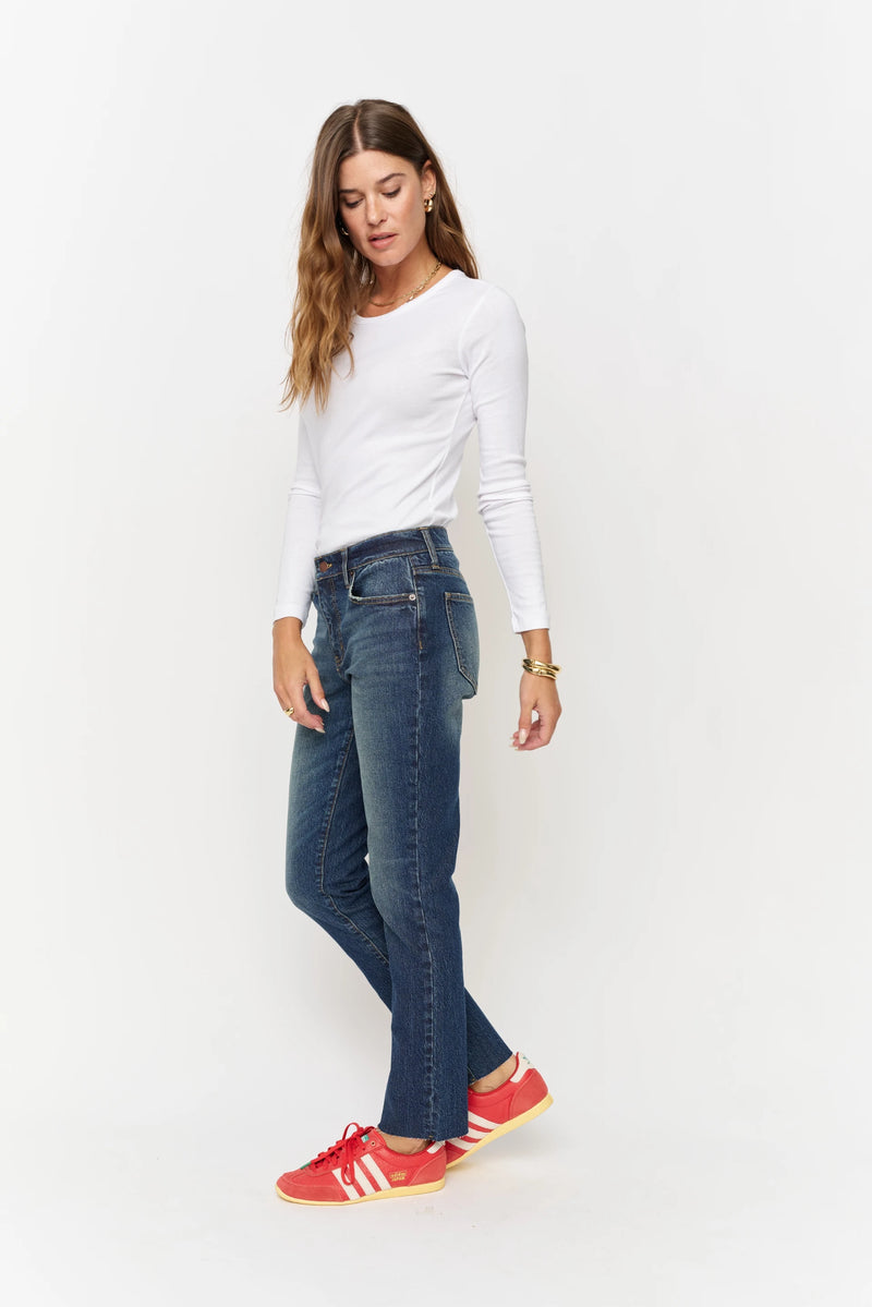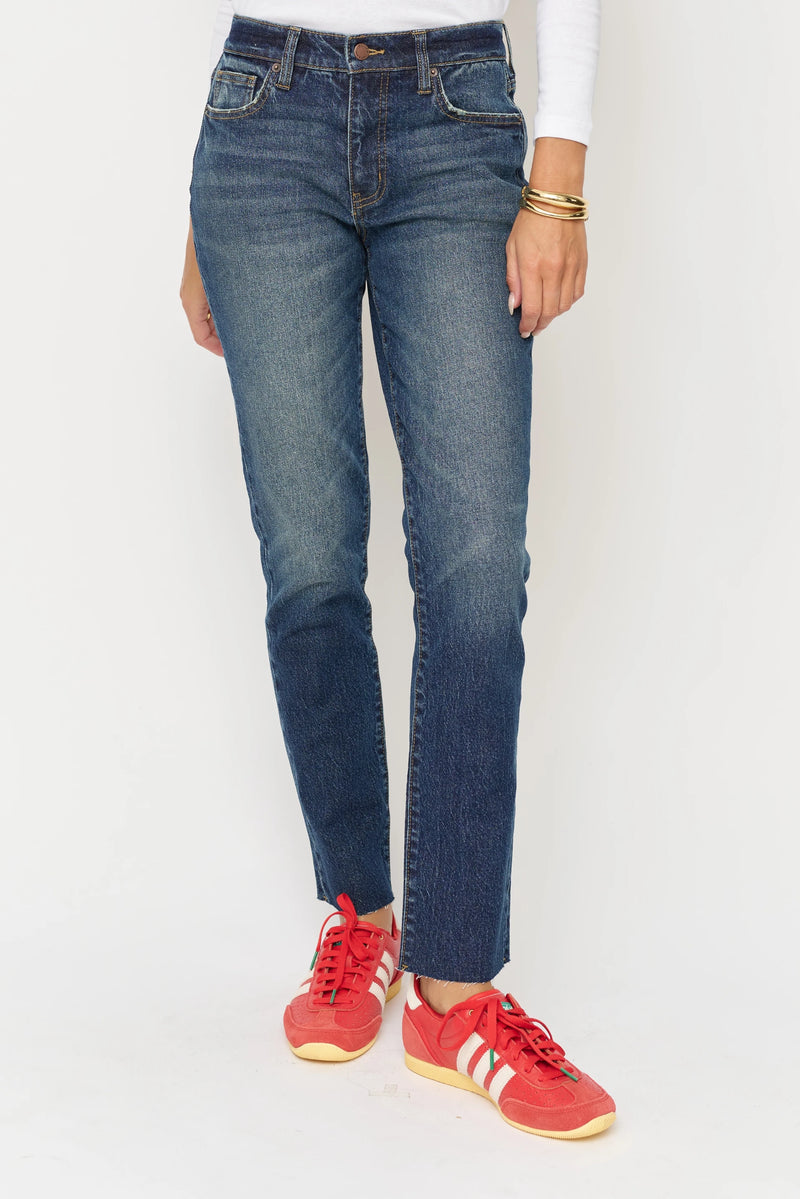 Mid-rise with perfectly balanced stretch. Chic yet casual with a raw hem to finish.