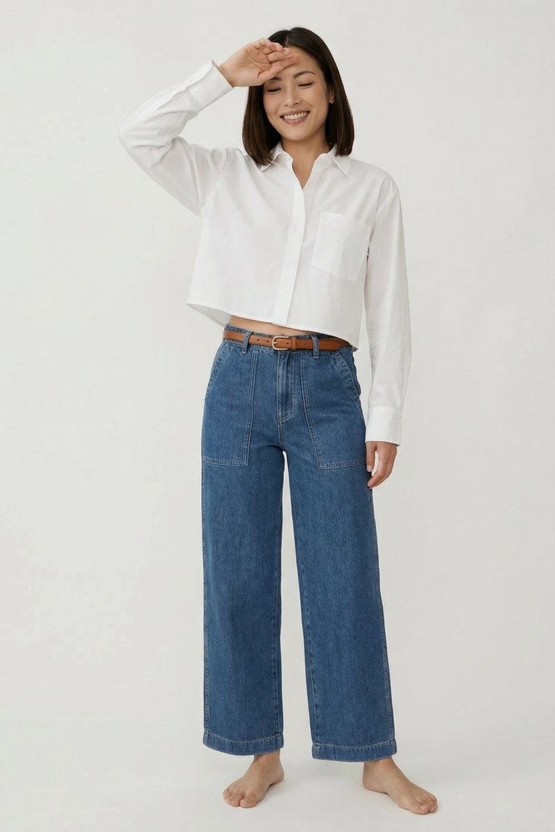 - A high-rise, easy fit with carpenter-style front pockets and buttoned back pockets for effortless comfort and understated cool.