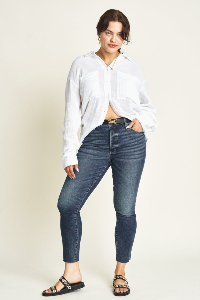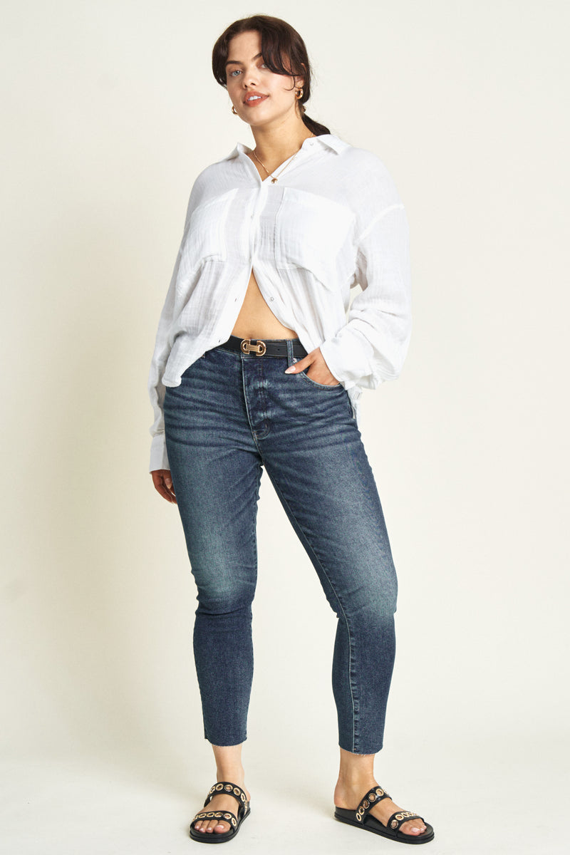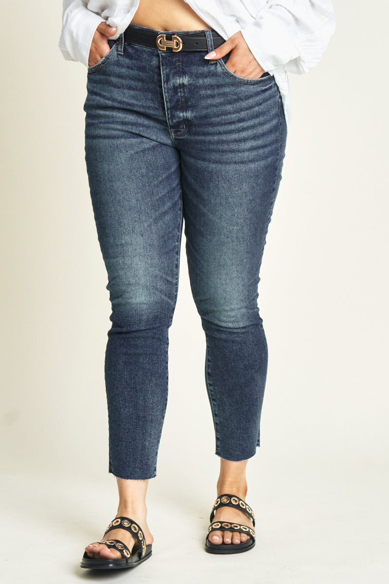 - Soft, stretchy denim with a tummy-smoothing rise and a leg-lengthening crop that feels like a second skin.