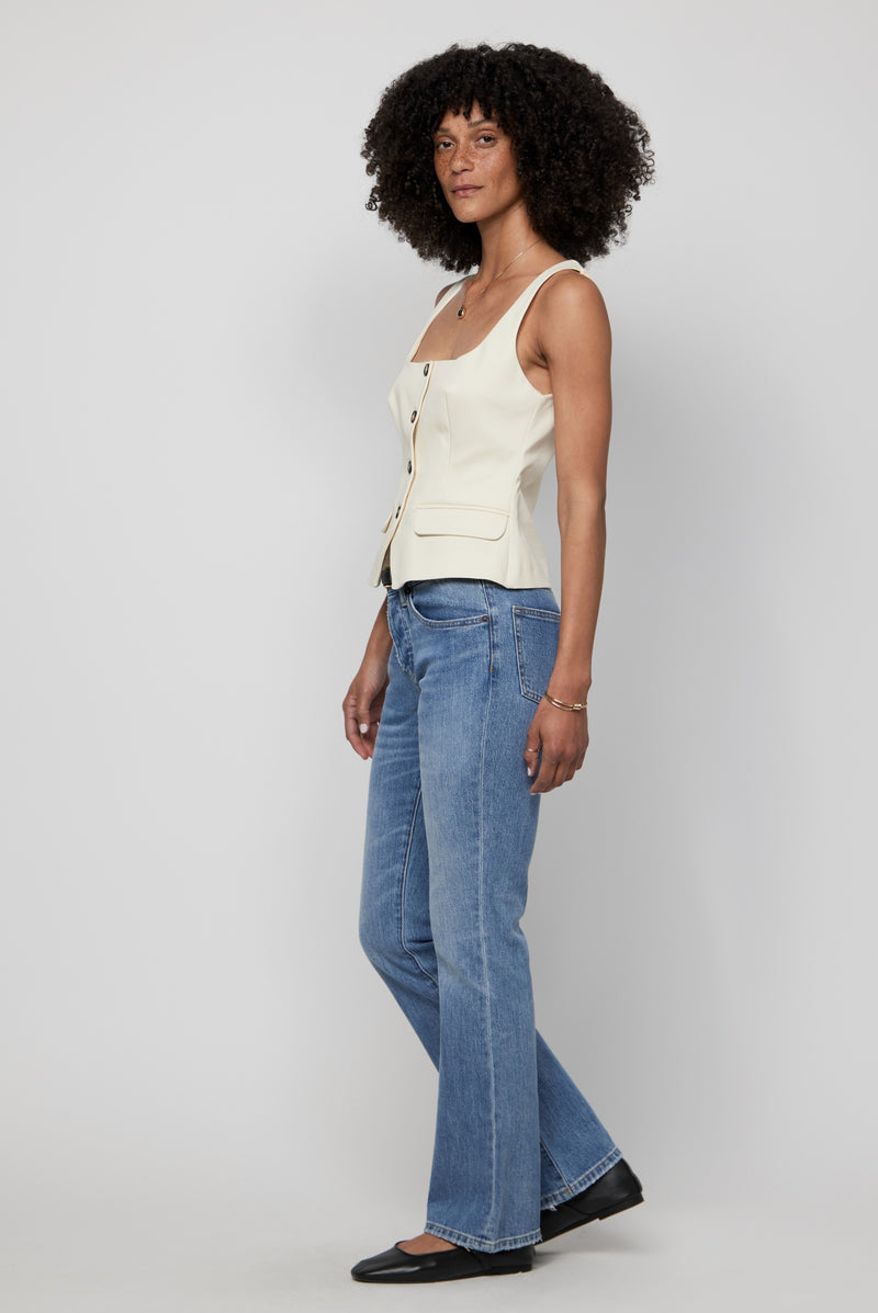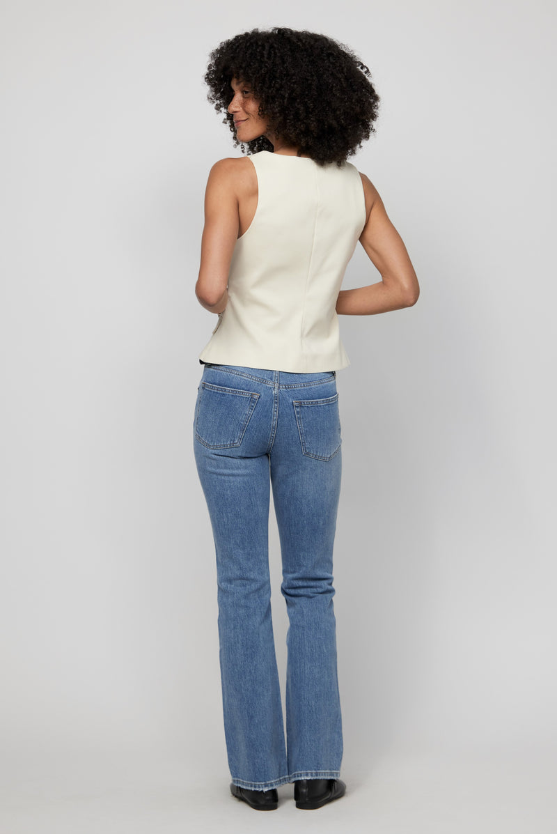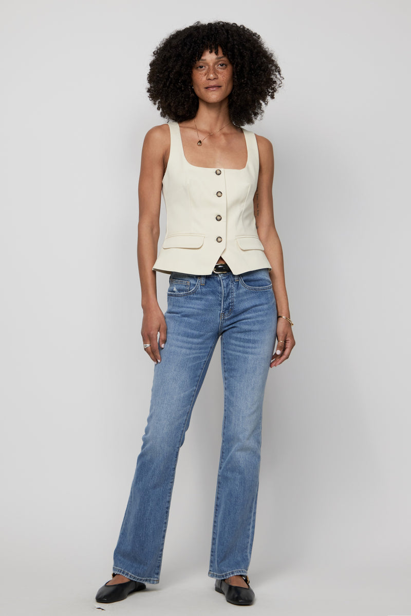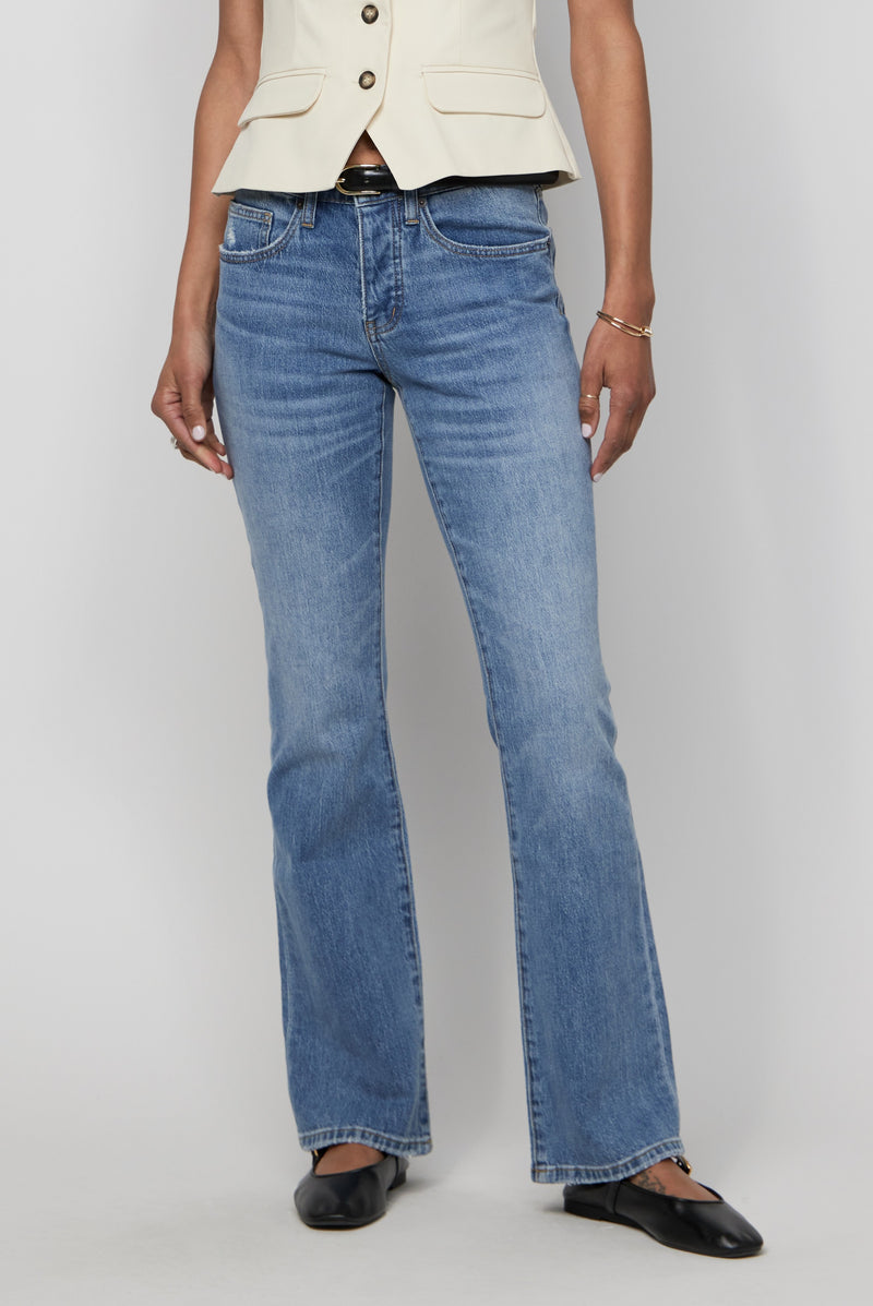 - Mid-rise, relaxed-fit bootcut silhouette with a button-fly and finished hem.