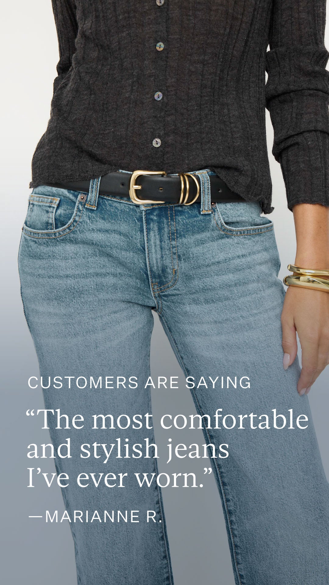 Each pair is crafted from premium, eco-conscious fabrics with a soft-yet-structured feel and a touch of stretch where it counts. Our waistbands don’t gap. Our rises hit where they should. And our fits are intentionally designed to feel great from the moment you put them on. From straight-leg staples to wide-leg favorites and everything in between, there’s a style for every mood and body type.