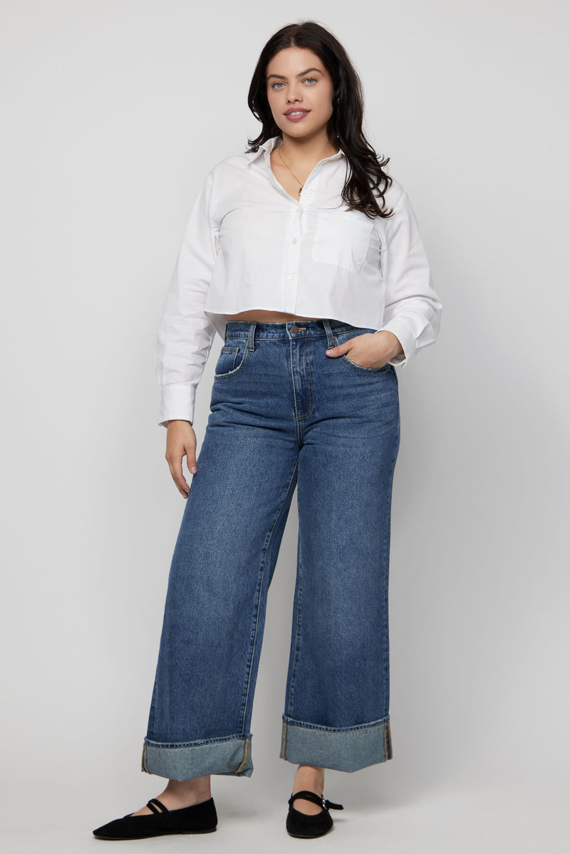 - High-rise with a slouchy fit, wide-leg jeans with a real-denim feel.