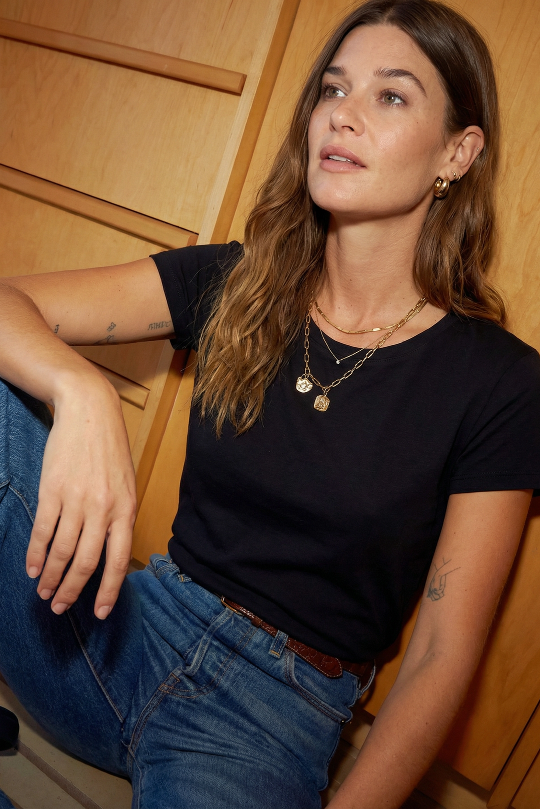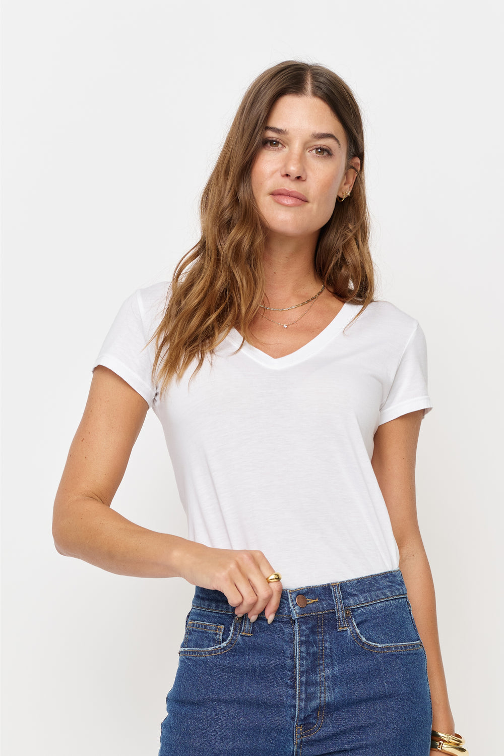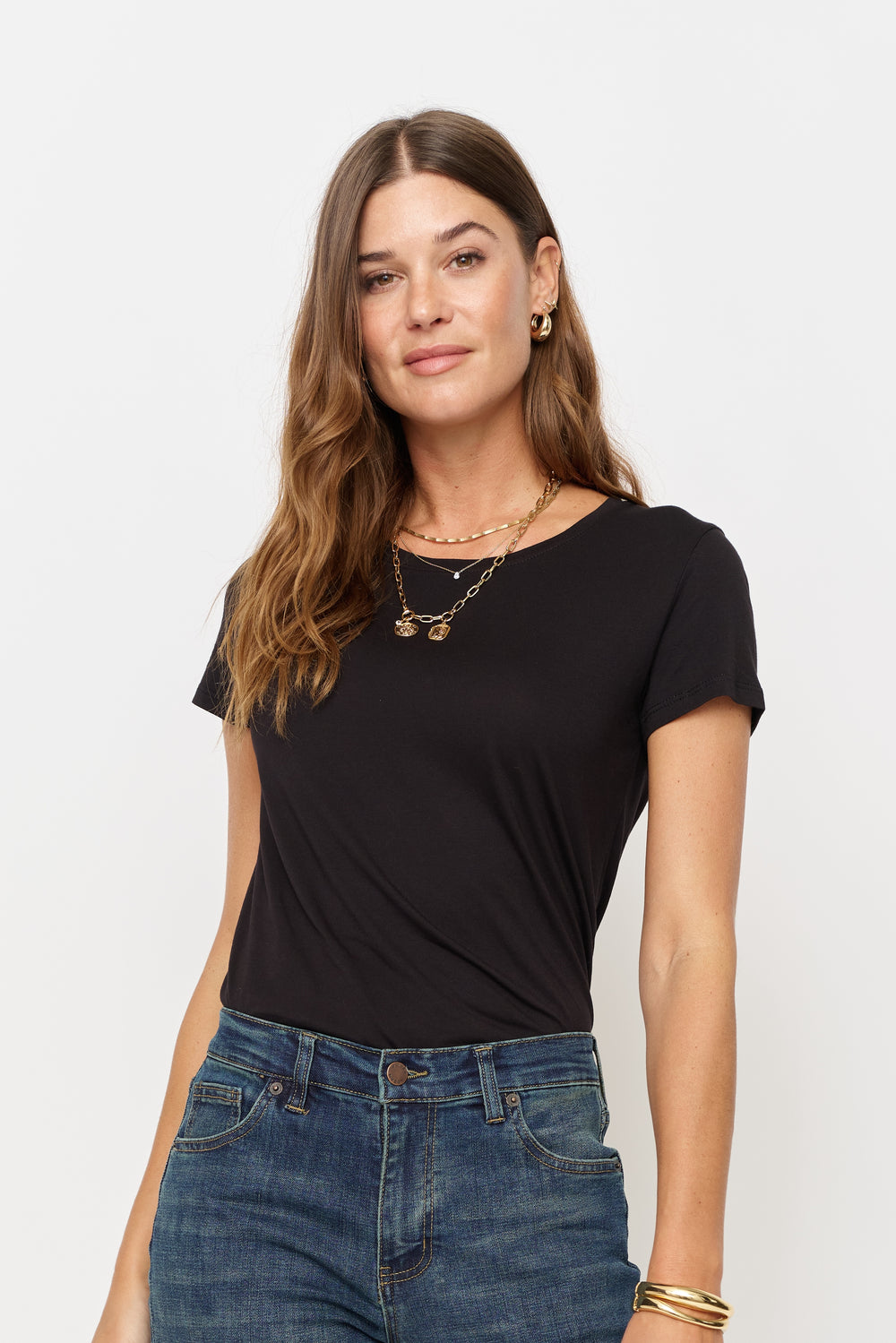 Our beloved Arden Tees are crafted from eco-friendly recycled and organic cotton. These have quickly become a favorite, known for their softness and sustainable origins. Available in essential colors like black, biscotti, and Earl Grey. Another women’s top that pairs perfectly with all our denim styles, the Arden Tees presents endless styling possibilities. Tuck them into high-waisted jeans for a polished look or untucked for a relaxed, easy-going feel.