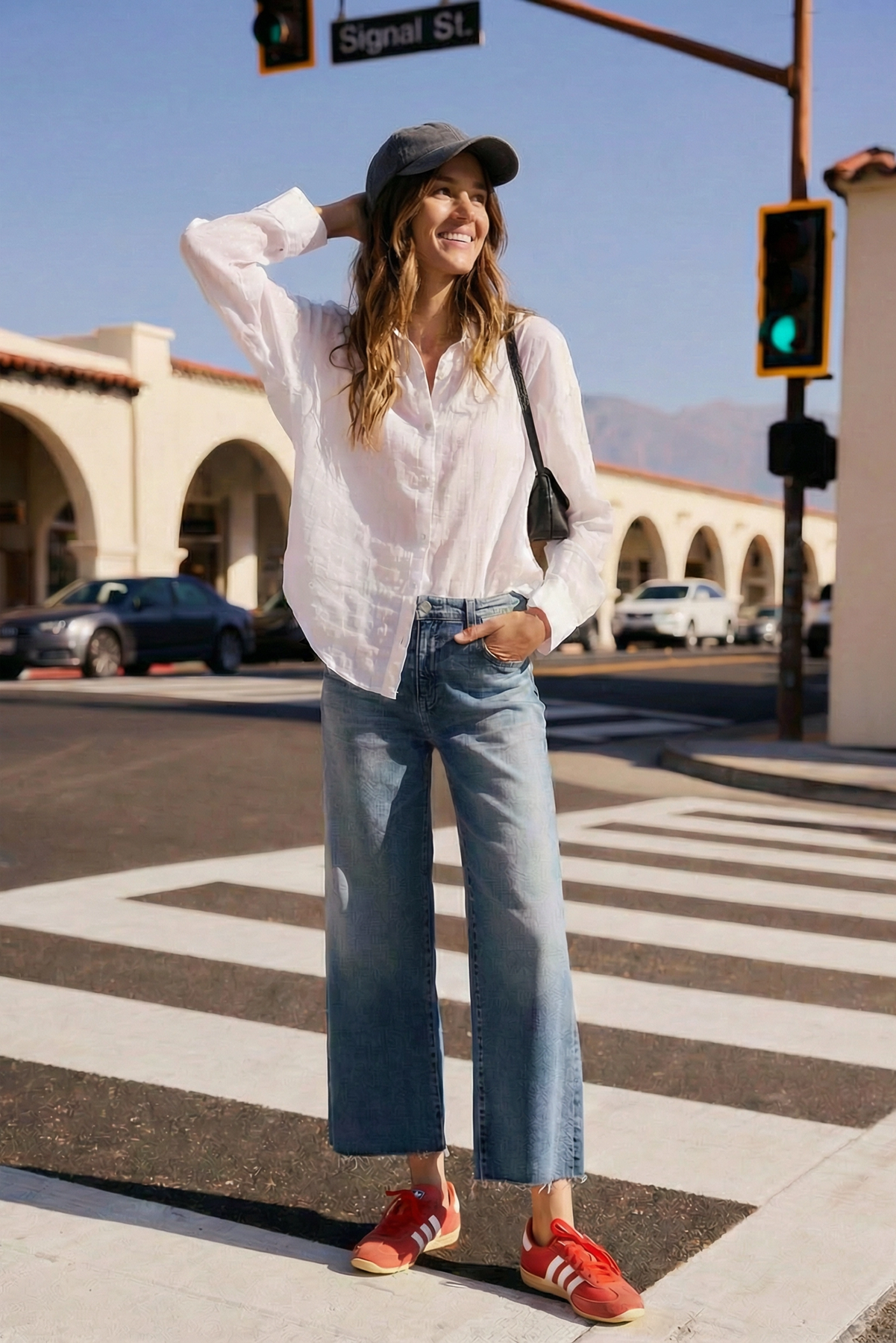 Whether you’re running errands or heading to brunch, these cropped wide leg jeans offer freedom of movement and that cool, lived-in look. The shorter length is especially ideal for showing off your favorite footwear — think sneakers, ankle boots, or strappy slides.