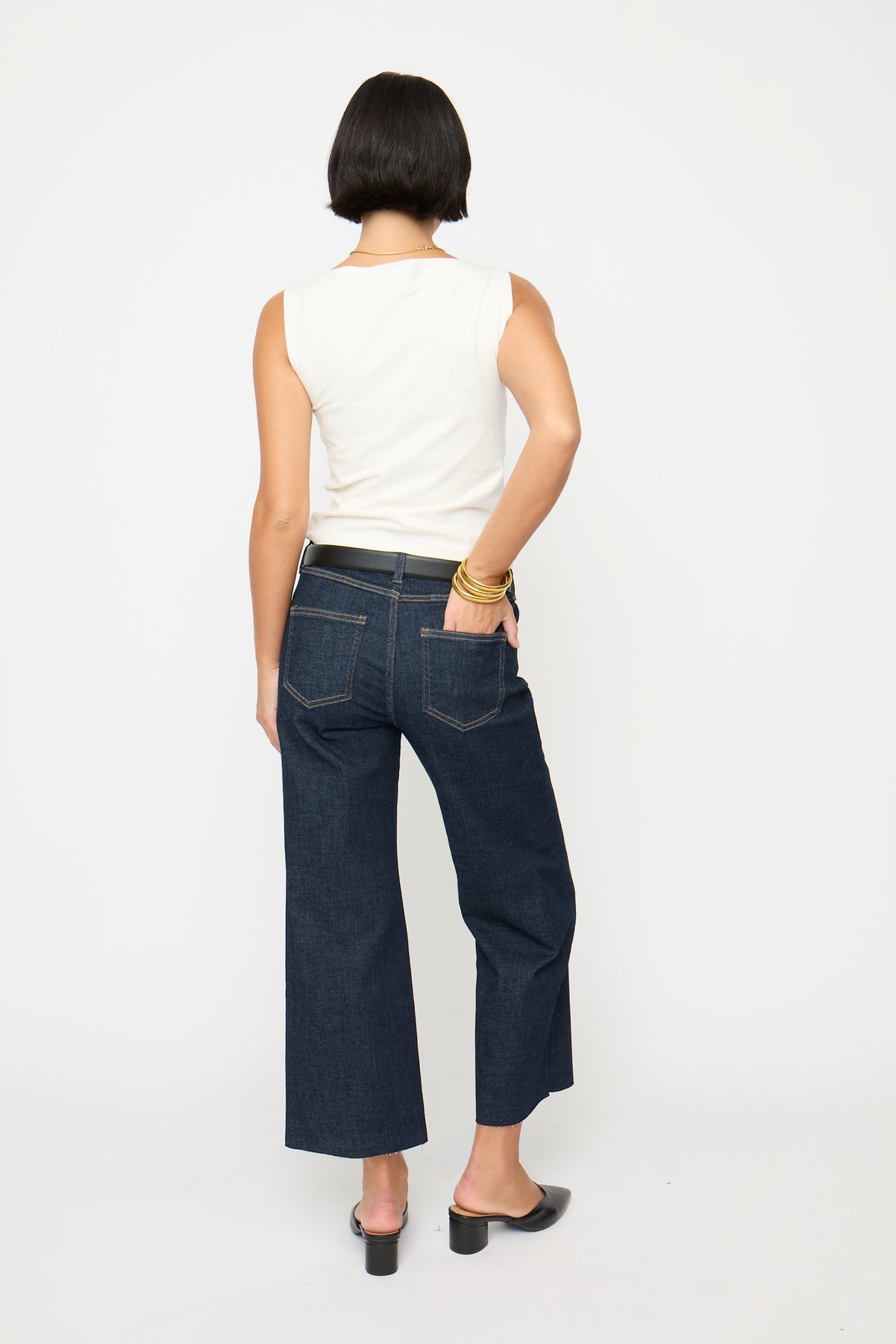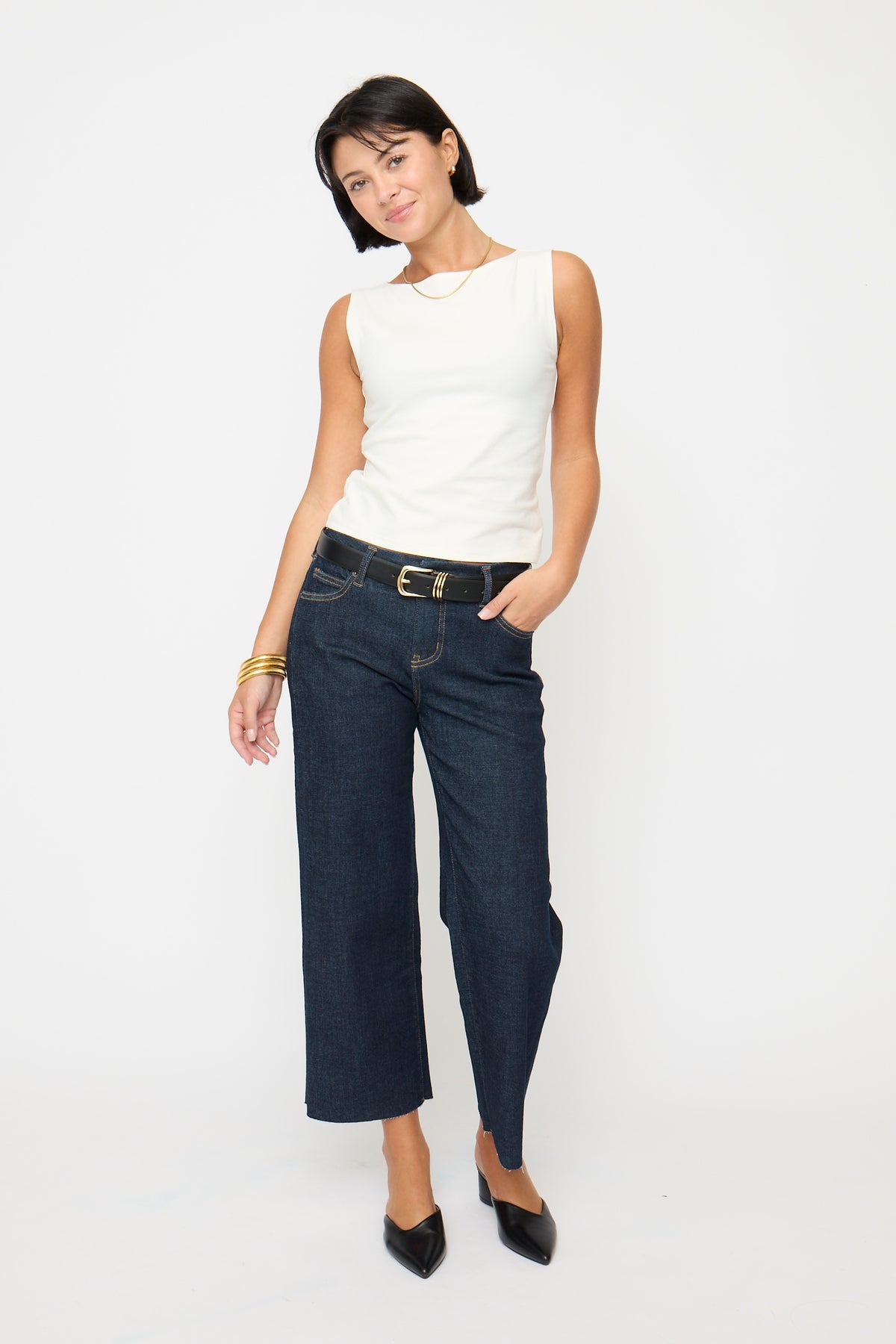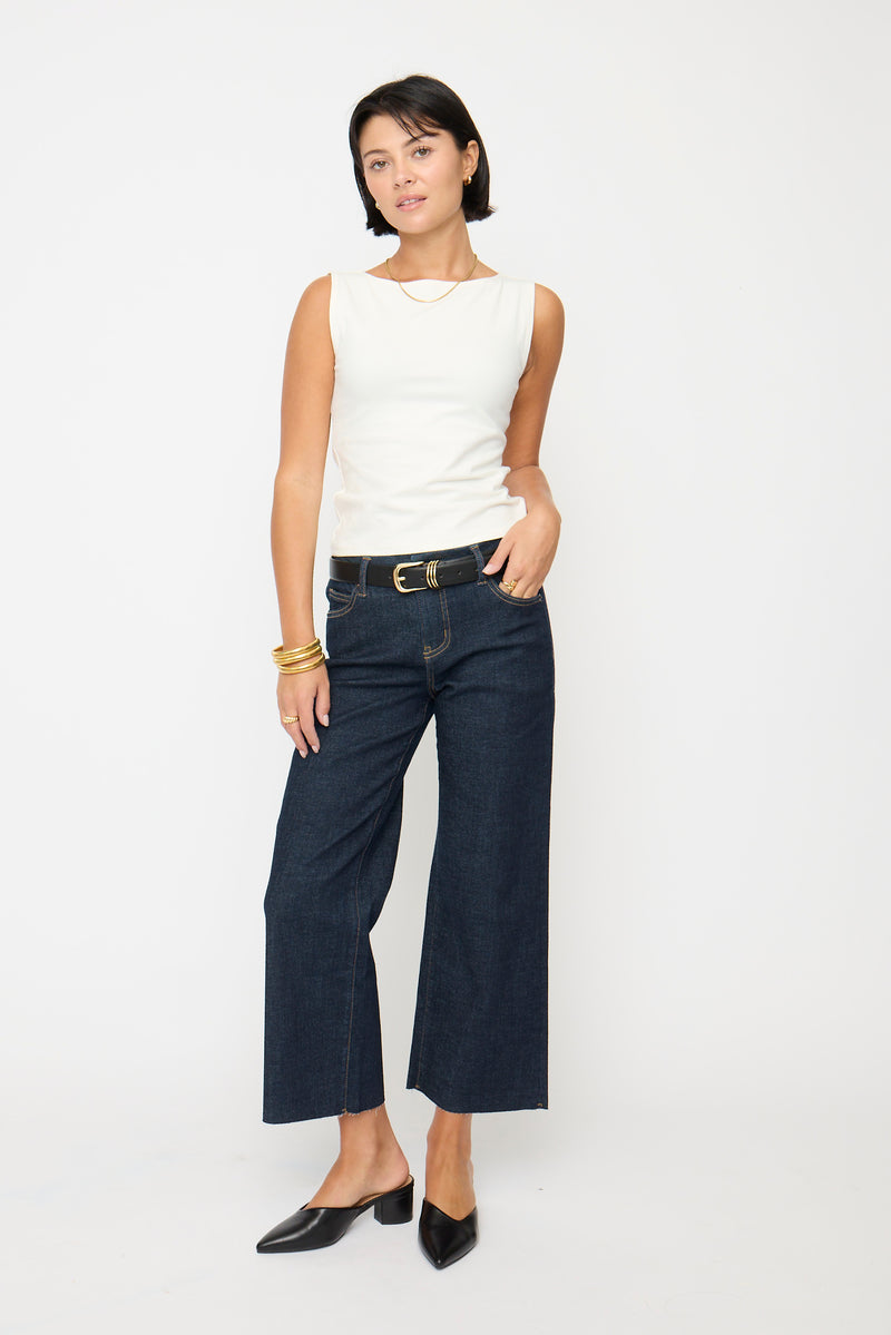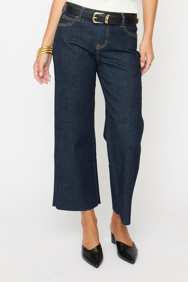 This pair is all about balance: the structure of high rise wide leg jeans with the ease of soft fabric and a modern cropped fit. Designed with the wide legged jeans women want right now—roomy in the leg, fitted at the waist, and cropped just right—these jeans make an instant impression.