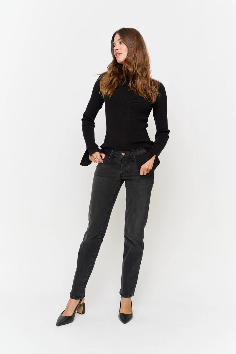 - Loved for its hip-hugging, relaxed fit, and all-day stretch. You grew up (and so did your low-rise jeans).
