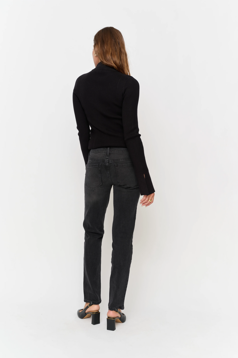 - Slim fit, low-rise jeans with a vintage button fly and a sleek, finished hem.