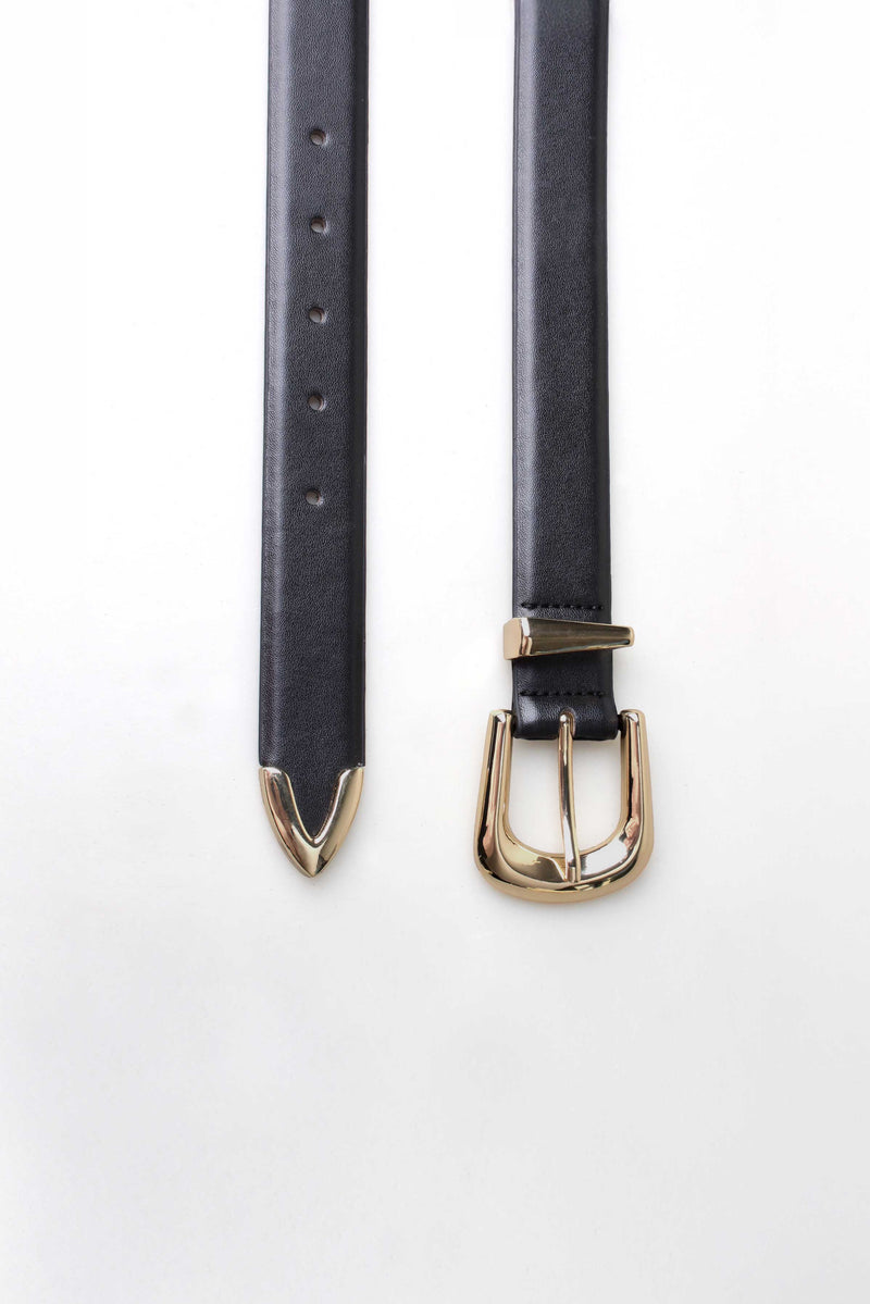 - Classic black finish with gold-tone buckle