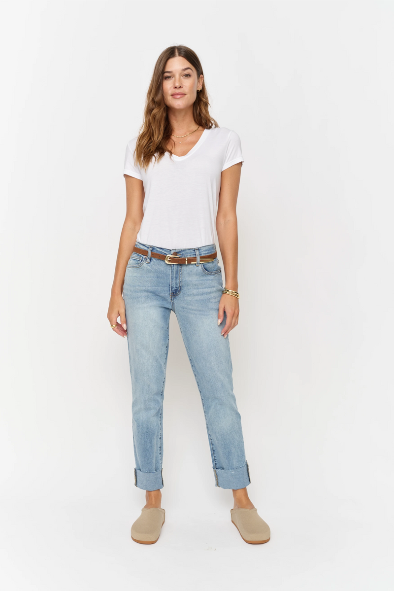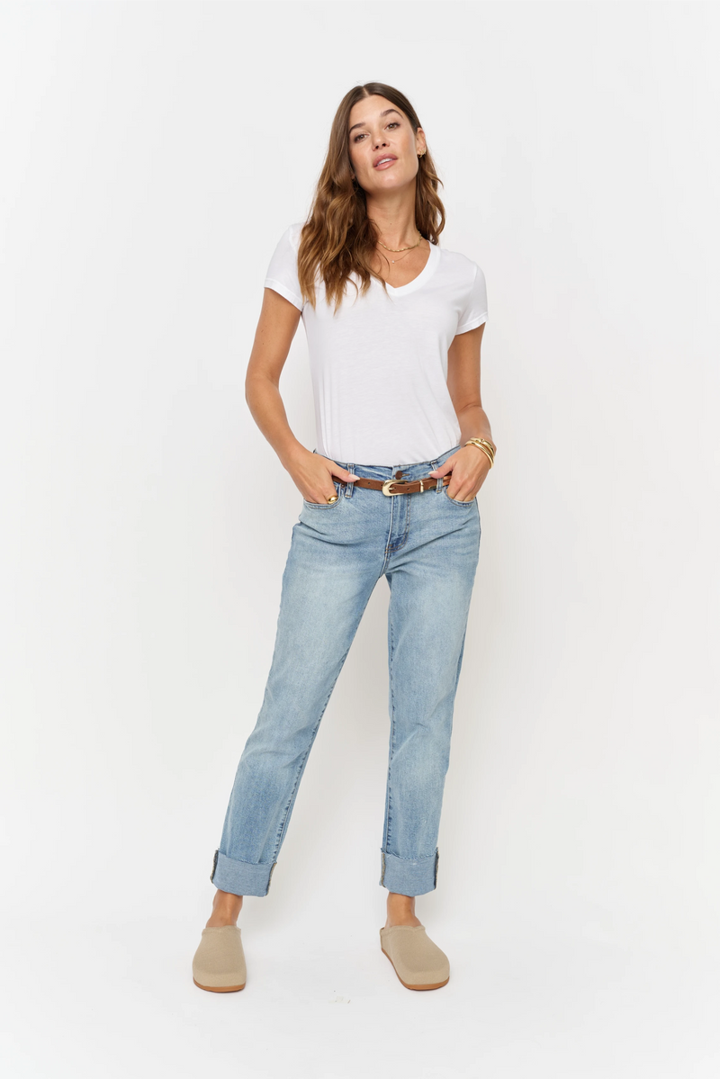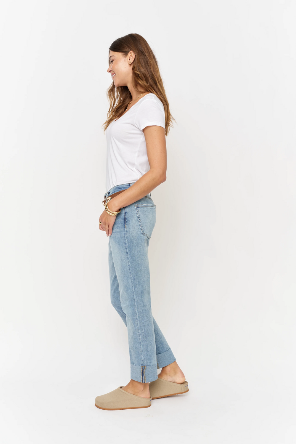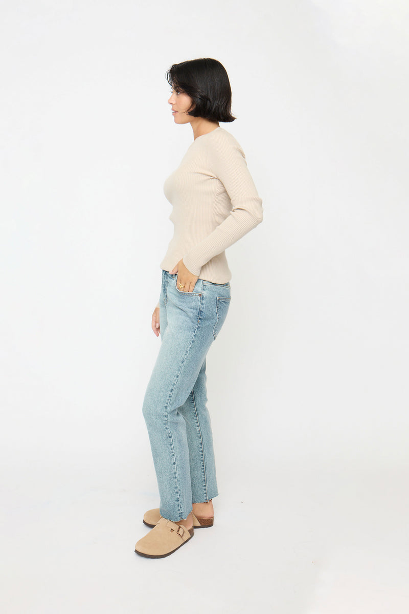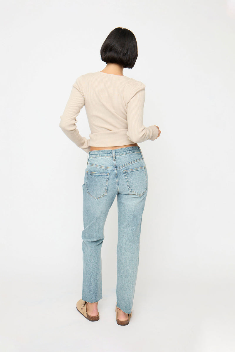 Mid-rise with perfectly balanced stretch. Chic yet casual with a raw hem to finish.
